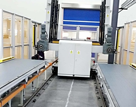 2. 超長(zhǎng)翻轉(zhuǎn)臂,由于客戶設(shè)備前方需要留員工操作區(qū),且還有成品輸送皮帶線,所以換模臺(tái)車與客戶設(shè)備之間的距離達(dá)到2.5米。